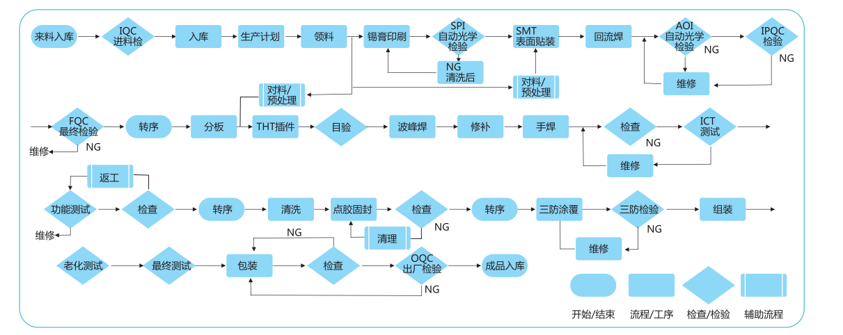 我司目前擁有工程技術團隊18人,10年以上技術工程師3人,5年以上工程師5人。扎實的技術力為產品提供可靠的工藝技術指導。通過對產品原理圖、PCB、結構進行詳細分析,從源頭上做好準備,負責客戶提供的生產文件的整理并轉化成內部BOM和工藝文件,把控各個環節的操作到位,指導生產制造部按照技術部工藝(作業指導書)執行作業標準,做好開工前的準備工作,過程中的技術指導工作。